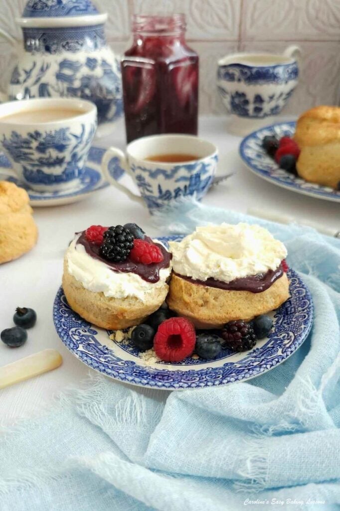 (**Photo of scones with homemade blueberry orange curd & whipped cream).
